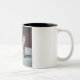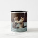 This two-tone ceramic mug features a heartwarming image of two playful kittens cuddling and tumbling on a cozy bed.