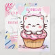 Celebrate your child’s first milestone with this adorable "Sweet One" themed birthday invitation. The design features a cheerful white kitten sitting inside a pink-frosted cupcake, accented by colorful sprinkles and soft pastel balloons.