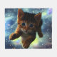 Kitten Flying In Space Fleece Blanket