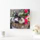 This little tuxedo kitty seems to have found new play things in this basket of flowers.