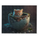 Cat in tea cup, jigsaw puzzles, kitten swimming inside a cup of tea, paintings, arts, photo realistic, fantasy art