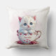 Beautiful Kitten in Cup Pink Flowers Throw Pillow