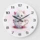 Kitten in Cup Pink Flowers Wall Clock