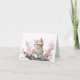 Watercolor artwork of a cute kitten in pink flowers for blank note card.