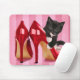 Cute black and white kitten in trendy red patent stiletto, painted by artist Maryline Cazenave.