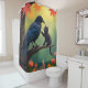 Bird Kitten and Raven Crows, Raven perched in a oak tree greeting a small cat bathroom shower curtain. Colorful bathroom home decor. Fantasy Colorful Background design of Garden Birds theme that you can change styles to match your bath decor. Magical garden trees, birds and small gray kitten friends. The early bird gets the kitty. Pretty Oak Tree Leaves and Garden Flowers. Bird fantasy springtime bathroom shower curtain. Bird image is sizable too. Perfect beautiful wild birds of a feather lovers gift idea. The smartest birds in the world are Crows and Ravens. And kittens are always cute.
