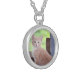 I chose gold plated so that the metal would not react with my skin oils and perspiration. But, I changed the necklace from the gold plated one to a sterling silver. My skin cells will tarnish the silver. But it will not look as bad if some portion of the gold plated necklace somehow became compromised. Zazzle did a find job turning the picture into a pendant for me. As you can see, the colors and the printing of the final product, match the preview. The picture I took is not very clear. But I am pleased with the product I received.