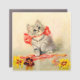 Car Magnet featuring Meta Plückebaum’s artwork Kitten with a Red Ribbon (b. 1876). A grey kitten with dark stripes is beautifully adorned with a red ribbon. The kitten plays with a bee. Yellow flowers decorate the foreground. A wonderful gift for cat lovers and German art enthusiasts!