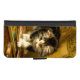iPhone Wallet Case featuring Henriëtte Ronner-Knip’s oil painting The Young Artist (1821-1909). A black and white kitten plays with a paint set and two brushes. An adorable gift for cat lovers and Romanticism enthusiasts.