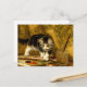 Postcard featuring Henriëtte Ronner-Knip’s oil painting The Young Artist (1821-1909). A black and white kitten plays with a paint set and two brushes. An adorable gift for cat lovers and Romanticism enthusiasts.