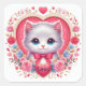 Kitten with Red Bow with Romantic Floral Hearts Square Sticker