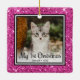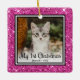 This lovely Kitten's 1st Christmas photo ornament with a pink glitter edge, the words "My 1st Christmas", your kitty's photo and name and the year will look beautiful on your tree. You'll cherish it and enjoy taking it out every year to put on your tree.