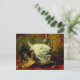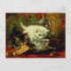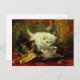Postcard featuring Henriëtte Ronner-Knip’s oil painting High Tea (1821-1909). A fluffy white kitten drinks from a teacup and a tabby nibbles a pastry on a tea tray. A perfect gift for cat lovers and Romanticism enthusiasts.