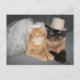 Orange tabby bride and Siamese groom postcard