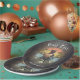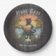 Kitty Buccaneer's Sunset Quest Paper Plate: A black cat, dressed as a pirate, is holding a treasure map and standing on a retro sunset.