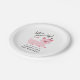 Cute and funny birthday party paper plate for your child's cat theme party. Illustration of a pink cat with a smile on her face wearing a party hat. The text above says "let's paw-ty!" You can add your child's name and age at the bottom. Texts are easily customizable online.