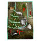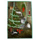 Multiple kity cats gather around a staircase with a Christmas tree and other Christmas decorations some just lazing around others battling temptation but no one in trouble yet cat lovers Christmas holiday gift bag