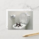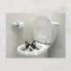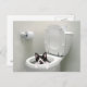 Black and white kitty cat peeks out from the toilet bowl cat lovers humorous postcard