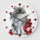 KITTY CAT,KITTEN WITH RED ROSES,Black White Large Clock