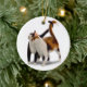 Original fne art design of a tuxedo and a calico cat by designer Carolyn McFann of Two Purring Cats Studio on a quality ornament for feline fans.