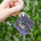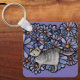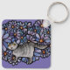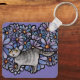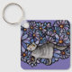 Kitty Cat Purple Daisies Grey Cat Art Gray Cats Keychain