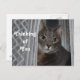 Customize this thoughtful postcard with your own photo or use the photo of my cat. Text can also be customized. Current text reads "Thinking of You" Let a friend know you care by sending them this beautiful post card. The purrfect card to send to a cat lover.