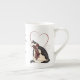 Bone China tea or coffee cup with folk art picture of a black and white kitty cat wearing a burgundy satin ribbon bow. Personalize with your own text. Text reads Cats are the center of the universe. Perfect for cat lovers. Design, background & layout: Deborah Miller www.zazzle.com/visages Cat: Trina Clark digiscrapkits.com/