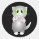 A playful green-eyed kitten, holding its cute little pink paws up against the "screen," adorn this adorable kitten sticker.