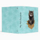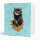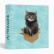 This adorable pet cat record keeping binder is done in an aqua starburst floral pattern. Graphics of a cute Maine Coon kitten sitting in a cardboard box, decorates the front of the binder. Personalize the black text, on the spine of the binder, to suit your needs. Purrrfect for keeping all your pet records. Makes a great gift for a first time pet owner or someone with multiple pets.