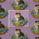Sweet, vintage kitty in a basket of flowers, with lilac background makes for a pretty fabric design! Great for crafting, home decor and sewing projects for the vintage or cat lover!