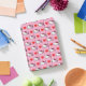 I was super excited when I got my cover in. It is attached by a magnet across the edge. I don’t think it will be very protective but it is very cute. I’m going to keep my iPad in a sleeve and use this face cover while I have it out. It folds to create a tilt for better viewing and to keep the iPad at a slight angle for typing. The colors are bright and it is fun. I’ve really enjoyed it. The personalization looks like amazing. It is the same color as the picture and is the same brightness. Well done! Very nice.