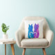 Two colorful kitties create the shape of a heart with their tails on this happy pillow that will uplift any living area. From an original watercolor painting by Cheri Caddick, this pillow reflects her work in art therapy, and her mission to uplift others through awareness and the joy of art and creation. In bright blues, pinks and purples, not only does this pillow add whimsy to your room, but it also offers a moment of joy.