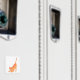 A magnet with a grabbed orange cat drawing and his tail raised.