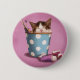 Adorable kitten napping in a blue polka dot pencil pot, painted by artist Maryline Cazenave.