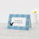 Silhouette of a cat on a blue plaid pattern for pet loss sympathy.