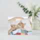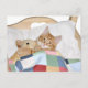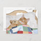 Orange or ginger young kitty cat all snuggled up in bed with his teddy bear cat lovers custom postcard