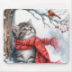 Kitty Watching a Cardinal In Snowflakes Mouse Pad