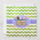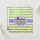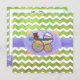 Cute Baby Carriage Green Zig Zag Baby Shower Gifts and Accessories by ITD Colors Galore features our unique candy color lime and white zig zag pattern with our signature texture in the background with a textured purple band and decorative centerpiece featuring a cute vintage baby pram holding a cuddly teddy bear. On the back the chevron pattern continues with a purple band that has a pattern of cute baby toys running along through it. Keep track of all your baby's first, starting with your chevron Kiwi Bash baby shower.