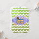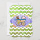 Cute Baby Carriage Green Zig Zag Baby Shower Gifts and Accessories by ITD Colors Galore features our unique candy color lime and white zig zag pattern with our signature texture in the background with a textured purple band and decorative centerpiece featuring a cute vintage baby pram holding a cuddly teddy bear. On the back the chevron pattern continues with a purple band that has a pattern of cute baby toys running along through it. Keep track of all your baby's first, starting with your chevron Kiwi Bash baby shower.
