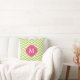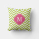 Kiwi Green Fuschia Zigzag Pattern Monogram Throw Pillow