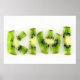 Kiwi fruit cut in to letters to spell the word KIWI.