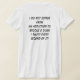 My overall review is that the T-shirt is nice, it fits true to size however the font is significantly smaller than advertised and you can't read it. The printing is unreadable and there is a strain to read it. It does not look like the advertised product. Maybe the shirt color is darker or a larger more visible font should have been used. Photos with and without flash and font is barely legible.