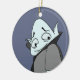 Lightweight, smooth, pure white ornament with nice sheen. Perfect size to be seen from across the room ... and to attract closer inspection! Price was great for ordering enough for the whole family! Clear, bold black design just as requested. Matches the order exactly. Just so nice!