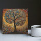 This stunning ceramic tile showcases an abstract Tree of Life inspired by Gustav Klimt's "golden phase." Klimt was fascinated by Byzantine mosaics and developed his own mosaic technique using gold leaf and bright colors. This artwork pays tribute to Klimt's innovative approach to mosaic and captures the opulent beauty of his style. Bring a touch of sophistication to your home decor with this exquisite tile.