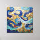 A dynamic interplay of swirling blues and invigorating yellows captivates the eye. The composition feels like an abstract representation of a starry night merged with oceanic waves. Intricate patterns add depth, while splashes of red provide a focal contrast.