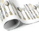 A beautiful illustration in FAUX gold and silver of knives, forks and spoons with arum lily, roses and grass etchings on them. IDEAL FOR - chefs, catering specialists, restaurants, hotels, resorts and cooking schools