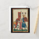 An illustration from the medieval 14th Century Codex Manesse manuscript. A knight holding a heraldic banner and shield, while his squire tends to his horse. Great gift for someone interested in the history and art of the middle ages. Beautiful painting of a scene of medieval chivalry.