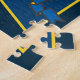 Graphic prince's knight shield crest with a crown, lions head, star, and your own initial and name in the blue ribbon fun kids jigsaw. Personalize with your own knight's name and initial, currently reads William. Other matching items are available. Original knights design by Sarah Trett for www.mylittleeden.com on Zazzle.
