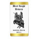 Black and white home made beer label, with vintage artwork of a mounted knight done in black, against a white background, with gold tone edges at the top and bottom. Text in black is fully customizable for your home made beers. Makes a great gift idea for your favorite garage brewer.