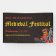 Medieval Festival or Renaissance Fair type event banner with your custom information. Antique fonts and a colorful vintage image of a knight on a horse are on a black background. Edit the text for your event.